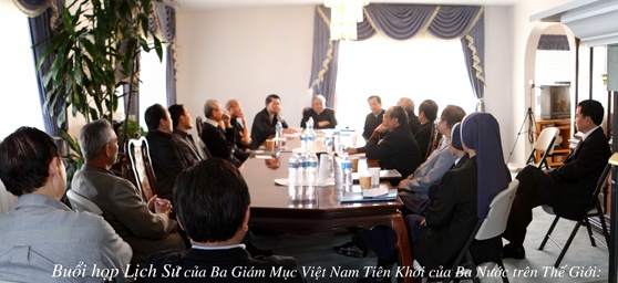 NAM CALI – Cuộc gặp gỡ phải nói là lịch sử đã diễn ra trong vài ngày qua khi 3 Giám mục tiên khởi Việt Nam tại 3 quốc gia Mỹ, Canada và Úc: Đức cha Dominicô Mai Thanh Lương, Giám mục phụ tá GP Orange, Hoa Kỳ, Đức cha Vincent Nguyễn Mạnh Hiếu, GP Toronto, Gia nã đại, và Đức cha Vincent Nguyễn văn Long, GP Melbourne, Úc châu, đã có cuộc họp mặt thân hữu để chia sẻ kinh nghiệm về một số những vấn đề quan trọng liên quan đến mục vụ, tôn giáo, xã hội, giáo dục và nhận định về tình hình Giáo hội và Quê hương Việt Nam.