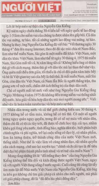 Nếu báo Người Việt không phải là Việt cộng như lời đồn trong CĐNV thì nên suy nghĩ lại hành động vừa qua, kẻo những tình cảm của CĐNV với Nhật báo Người Việt từ nay sẽ bị giảm sút qua hành xử không khác gì bọn côn đồ Việt cộng đối với người dân trong nước.