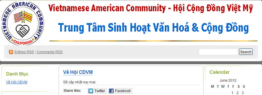 thì website của Hội CĐ Việt Mỹ, tuy website có địa chỉ mới, tên mới, logo mới, nhưng qua người chuyển tin (ông NTL), chúng tôi có cảm nhận đây là của "Ban Đại Diện Cộng Đồng Người Mỹ gốc Việt do ông NTL làm chủ tịch" của những năm trước. Đã từng "tạm ngưng hoạt động" khi ông NTL được "đôn" vào BĐD CĐ NV QG Nam Cali, nhiệm kỳ 2010-2012. Năm nay có lẽ là hoạt động lại với một tên mới, website mới, logo mới sau khi LD Thăng Tiến thất cử cuộc bầu cử cộng đồng ngày 15-4-2012 vừa qua. Và lễ bàn giao "tống cựu, nghinh tân" theo thông báo là vào ngày 10-6-2012.