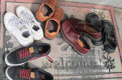 Buồn cười là những đôi giày dép của khách lại được để lại trên tấm thảm chùi chân mang chữ "Welcome" đặt trước cửa nhà!